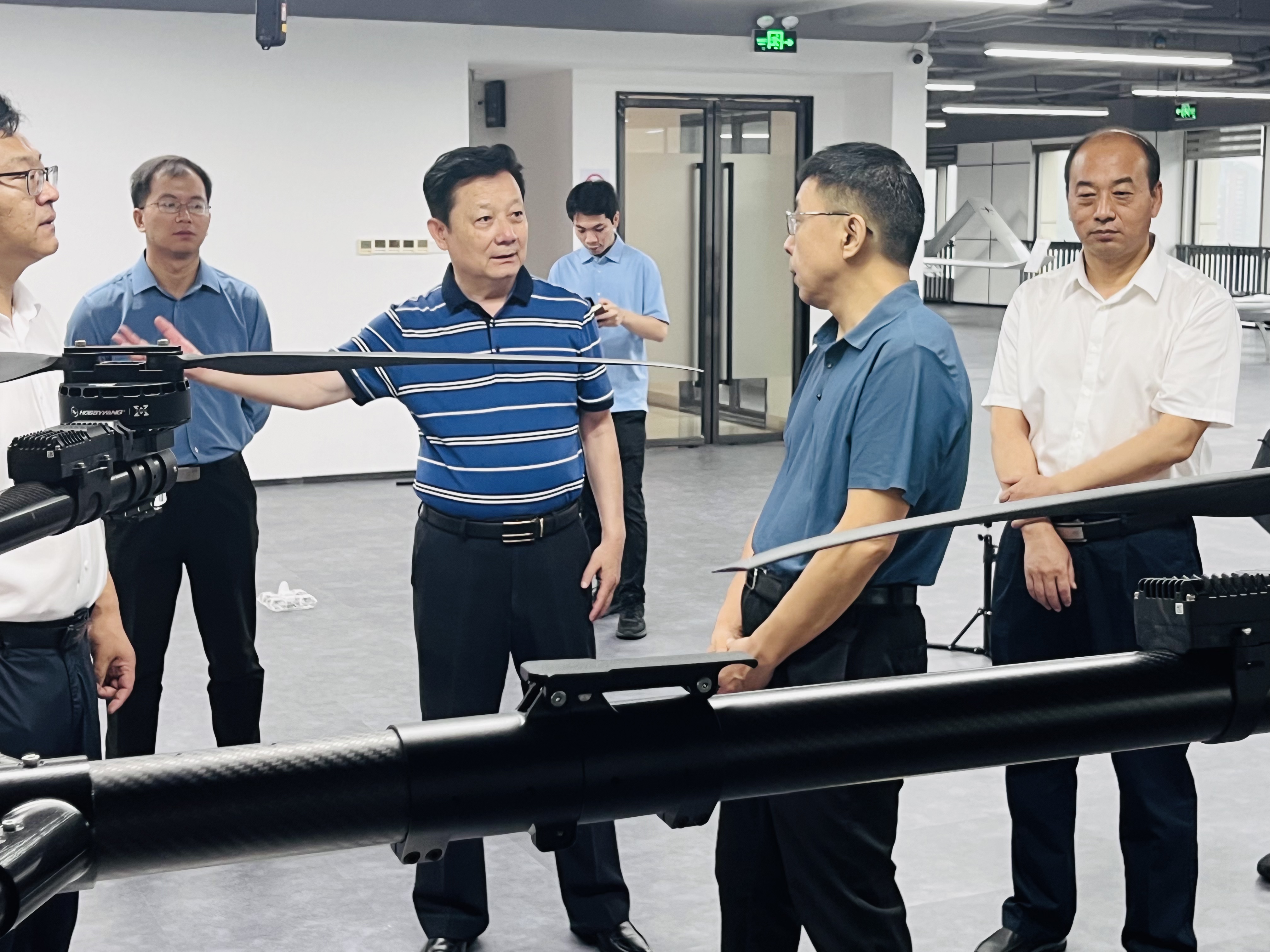 6月17日上午,广东省省委政法委副书记、新疆驻广东省工作组党委书记王奕文一行,在盐田区区委政法委副书记张长青陪同下莅临我司考察调研,我司中飞智能制造(深圳)有限公司董事长李维福及管理团队热情接待。此次调研不仅体现了省领导对我司的深切关怀,也展现了对低空经济这一新兴产业的高度重视。